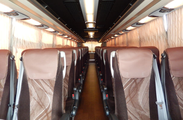 補助席無し、全席ひじ掛け付きハイグレードワイドシート採用で贅沢な仕様のバスとなっております。